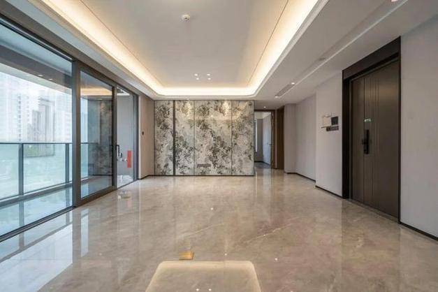 虽然体量不大,却舍得铺排气场。它定制了璞丽酒店式的长廊门庭,别的楼盘在拼门头宽度,它在营造归家的“纵深仪式感”。