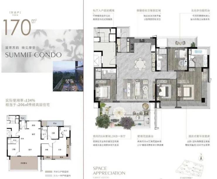 🥇建面约170㎡:270度顶奢套房设计实际使用面积相当于传统住宅205㎡传统高层住宅