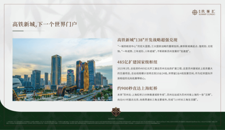 2️⃣高阶占位,时代主场:占位苏州北部核心引擎——高铁新城,坐享政府485亿投资苏州北站扩容红利,执掌城市发展脉搏,前景无限。