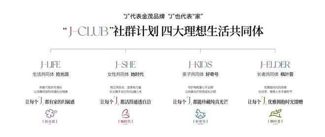 金茂“J-CLUB”社群计划打造生活共同体【拾光派】、女性共同体【她时代】、亲子共同体【好奇号】、长者共同体【枫叶荟】四大理想生活共同体,共建有温度的社区。