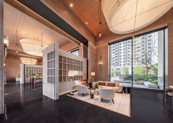 约50m宽的迎宾楼如城市界面的优雅屏风,挑高约8.8m的酒店式大堂以光影为笔,为归家写下第一重仪式感!只需一眼便将高门大宅的不凡气度展现的淋漓尽致!