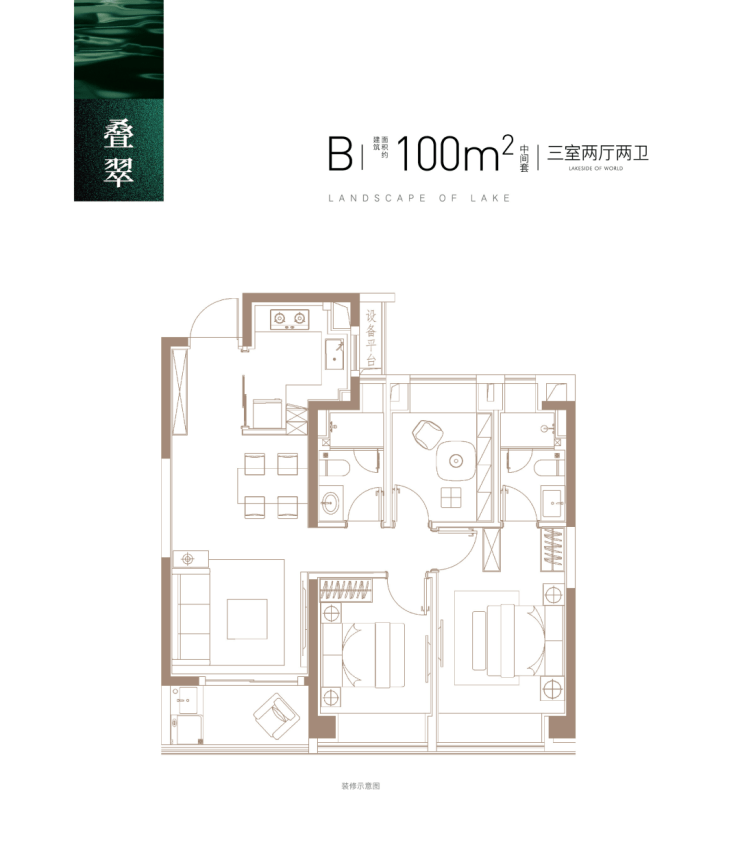建面约100㎡3房B户型(中间套)