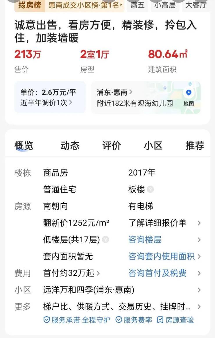 位于浦东惠南的次新小区,远洋万和四季,2017年竣工,这次总共要拍卖17栋楼111套房源。据网上查询到的资料,远洋万和四季当年一手开盘价是2万不到,最新二手成交价是2.8万,