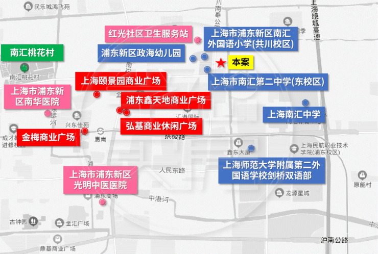 医疗配套:项目附近有红光卫生服务站,大约3公里范围内还有上海市浦东新区南华医院、上海市浦东新区光明中医医院、上海市浦东医院等医疗服务配套。