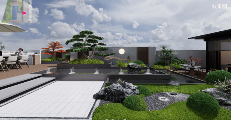 赏林下漫步、风雨连廊、汀水绿洲会客厅、星月草坪等多重场景