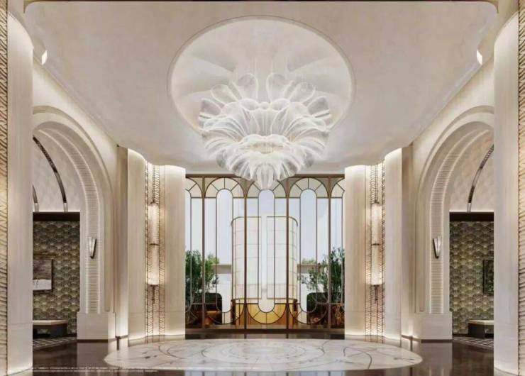 悦己显己的本真,复刻海派优雅,以高门大院礼序,约280米超尺度界面,臻选全球石材-贝克米白石材,于材质的碰撞与共生间,铺陈光影的诗意哲思,重塑当代门庭气度。