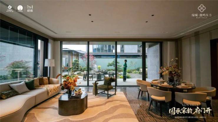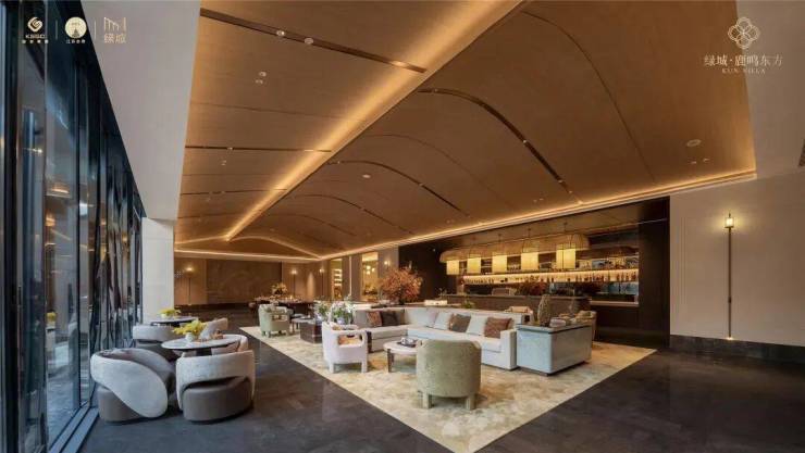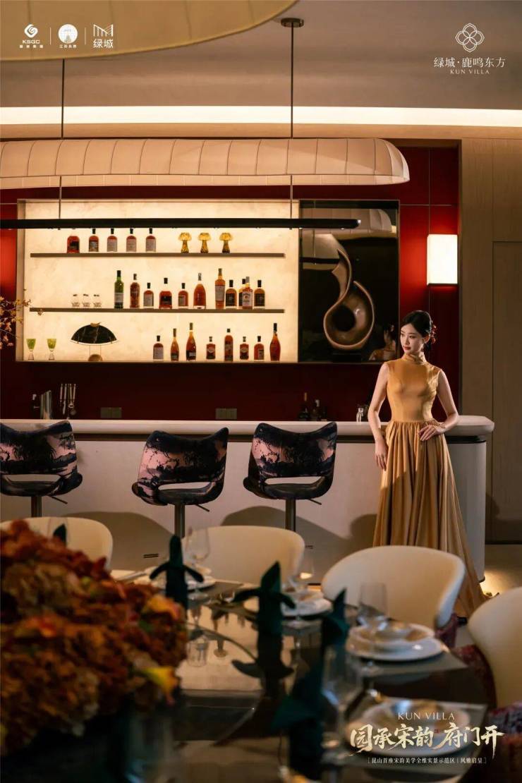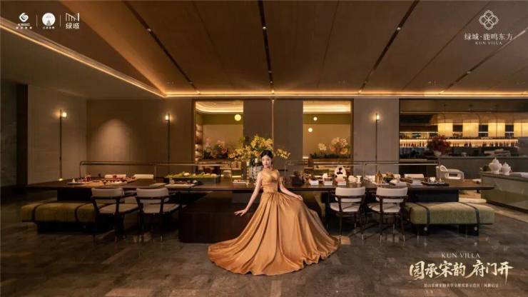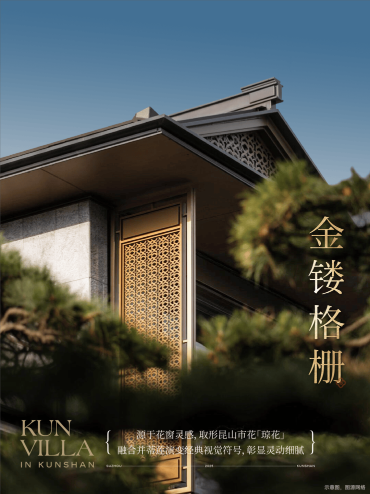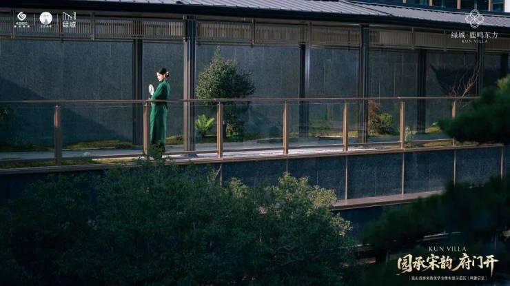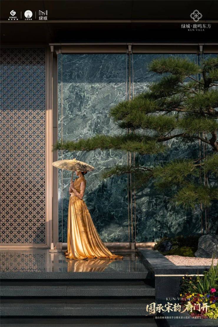 在细节上,绿城又开创性地首次重构了苏工技艺的精妙:比如结合宋式山水画屏与昆玉精雕的“白玉画屏”;比如以铝合金材料转译还原绞角造、榫卯及望柱等元素的“寻杖勾栏”;又比如绿城首次取形昆山市花琼花融合并蒂莲元素打造的“金镂格栅”,这些技艺不但代表着宋式美学“百事精微”的精神,更透露出绿城对产品细节的偏执。