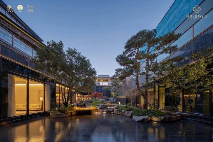 项目通过打造昆山首座下沉式宋风美学庭院,构建起双层洄游动线系统。绿城凭借6米高差的立体庭院布局,塑造出一幅可游可观的现代山水画卷。绿城设计团队取法昆山亭林公园,以自然高差为画布,用画笔把山、水、石、树等元素取用融合,结合池、泉、瀑、溪的立体多维水景系统,勾勒出城市里难得一见的自然式山水立体庭院。