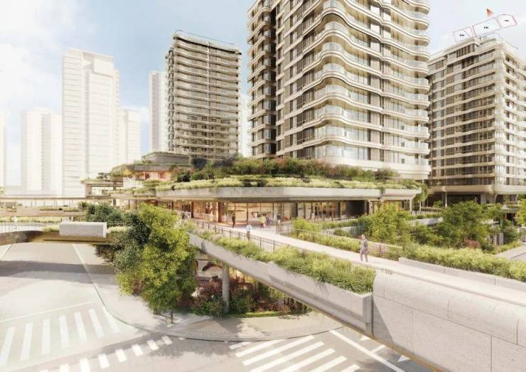设计特别关注商业与住宅塔楼的交接面,通过景观缓冲区将公共领域和住宅的私属空间分隔开来,以求最大限度地保护居民的隐私,营造安静的居住环境,并削弱后勤和屋顶设备的视觉影响。
