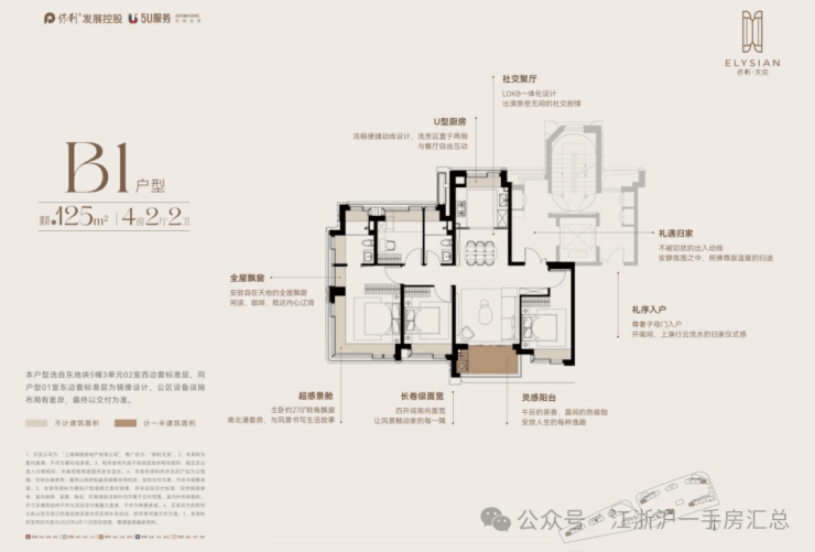 建面约125m²,约1000万起即可上车更舒适的边套四房!