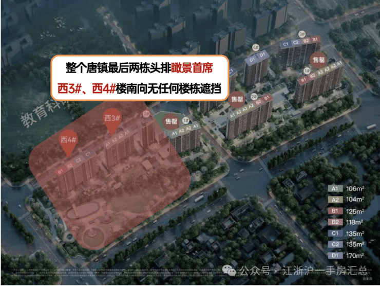 西1#边套:南面就是休闲绿地无遮挡(全年日照6H以上),拥有 堪比楼王的绝佳位置;距离高科东路超过50米,大大减少马路吵杂;尤其主卧可以全景俯瞰公园,拥有 整个小区独一份的景观位!还自带架空层!