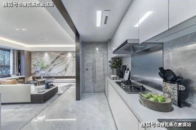 大面宽L型厨房,搭配北向生活阳台,整体尺度奢阔从容的同时,更显通透;