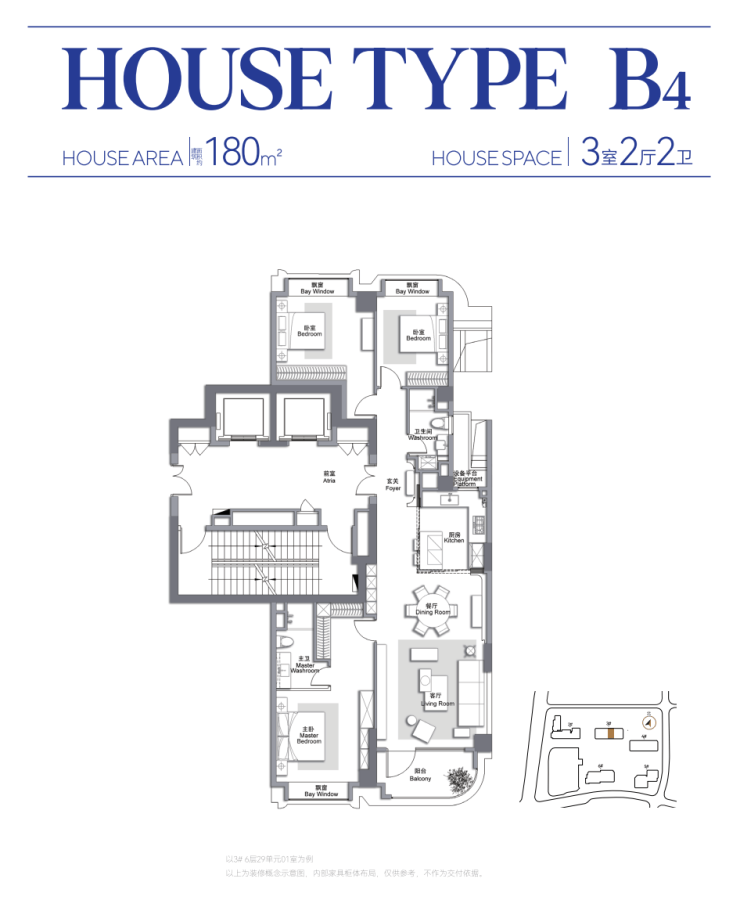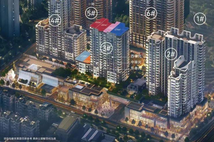 3号楼:总高19层,分3个单元,4楼部分为入户大堂,其中东单元实际住户4层;中、西单元实际住户19层;从东往西依此是250㎡、200㎡、180㎡、180㎡、170㎡、280㎡。