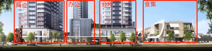 它具体包含了哪些内容?一句话概括来讲:圆弧状的办公塔楼+中部住宅+低区的商业街区。