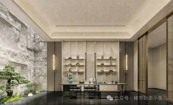 中庭的古木交柯,取自《长恨歌》"在地愿为连理枝",象征夫妻情深、家庭和睦。下沉庭院的报松石,寓意健康长寿、基业长青。独家爆料!古城首个宋风墅「建发璟园」示范区马上公开