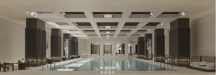 架空层泛会所拥有约6.6米(净高5.1米)的舒阔层高,为了让业主拥有更个性化、身份化的休闲时光,项目规划有会客区、恒温泳池、瑜伽健身等丰富的功能区,让业主在家门口,就能享受到如同高奢酒店般的休闲方式。