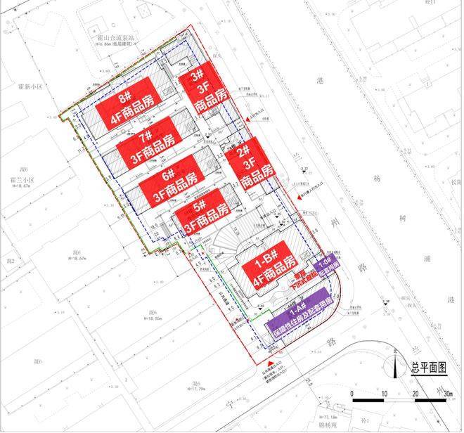 【项目四至】东邻兰州路,紧邻杨树浦港河道,南接济宁路,北面靠近霍山路,西侧毗邻霍兰小区