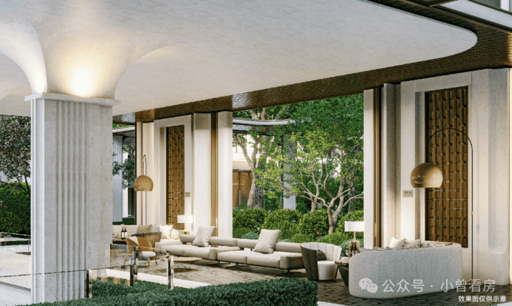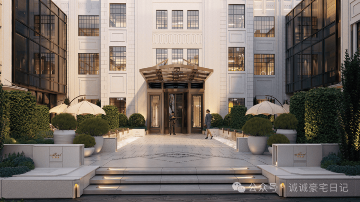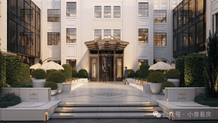 社区配置相当高端,归家仪式感匠心十足!设计了南北2个酒店式归家入口,其中南侧入口结合保留风貌建筑,以风貌庭院式设计,以“穿过一道 100 年的风景,便回到了家宅”为主题,项目强调从城市街道到社区庭院,引领入户的诗意渐进体验。