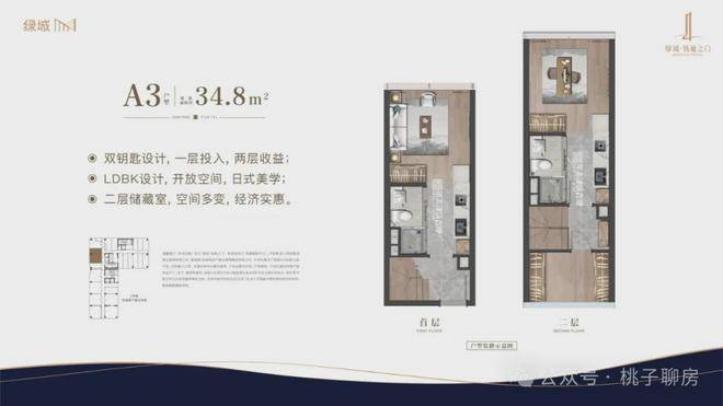 建筑面积约34-59㎡双钥匙公馆,买一层享两层,双倍空间,灵活多变,满足居住、办公、投资等多重需求,是杭州难寻的60万以下小户资产,且为实景准现房,小投入回报快,明星产品价值显著。