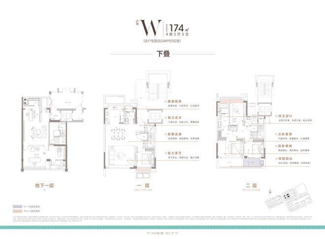 174m²下叠,挑高的宽绰地下室+公共绿地,真正的别墅享受: