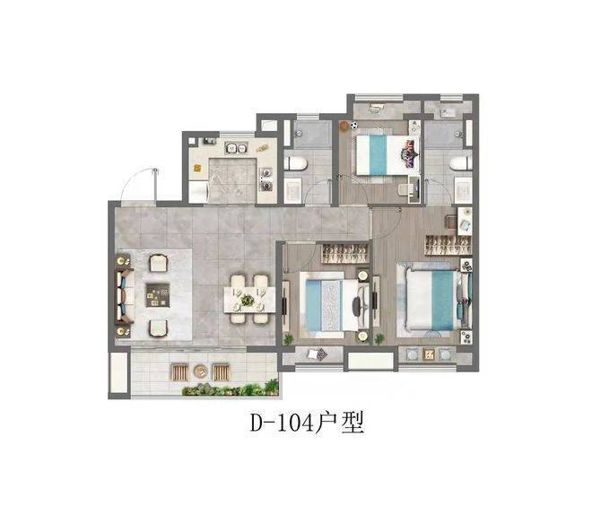 两间卧室分别位居于客厅两侧,私密性更佳;
