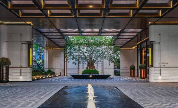 社区入口处,百米酒店式落客门庭气宇轩昂,贝金米黄石材的质感尽显尊贵;大树聚场,全冠移植超60年铁冬青,归家的第一眼便满是贵气。五重礼序园林(迎、礼、聚、活、登)层层递进,蓝钻大理石中庭水景波光粼粼,躺平水院爱马仕灰奢石拼花交相辉映,每一处细节都在诉说着海派住区的非凡品质。