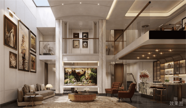 不光面宽尺度在遥遥领先于同类墅居市场,KING195的室内空间在垂直生活情境上也展现出精妙的演绎。地上三层与地下空间的组合,实现了功能上的彻底分离与情感上的紧密联结。