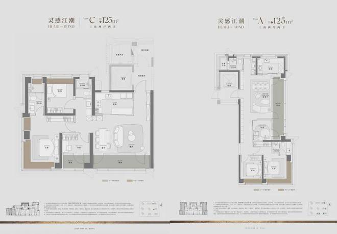 建面125㎡户型这个户型的含金量和受欢迎程度不用多说,也是前期卖得非常火爆的小户型。