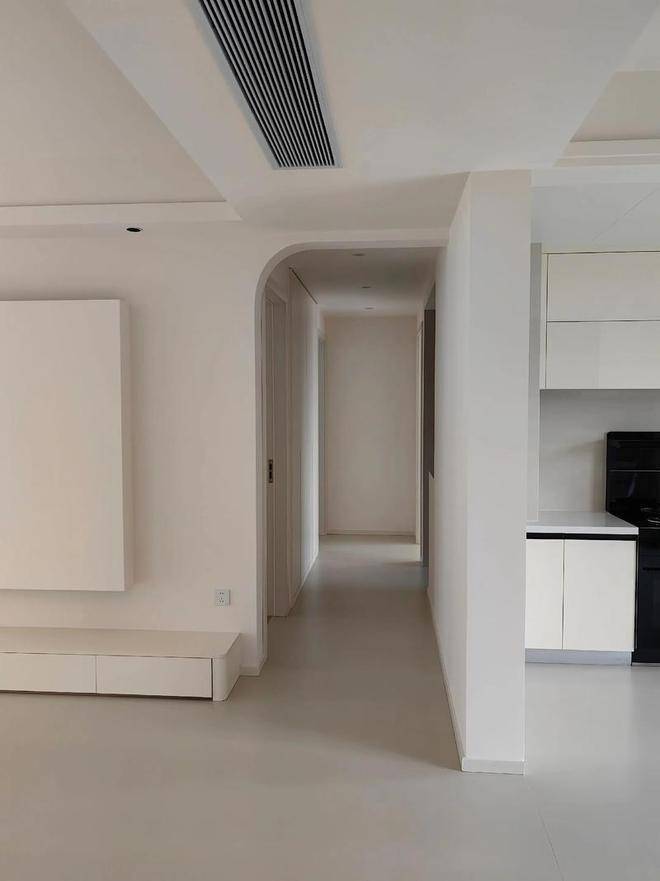 第一是6米的巨幅客厅面宽在本身飞机户型竖厅的结构下,又带来了「宽厅」的体验,属于又好看又好用的那一档。