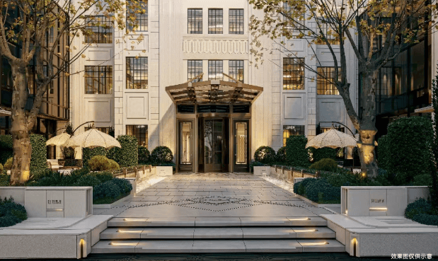 以两轴为脉络,串联起2个酒店式归家入口,其中南侧入口结合保留风貌建筑,以风貌庭院式设计,打造兼具历史底蕴与人文温度的归心之旅。