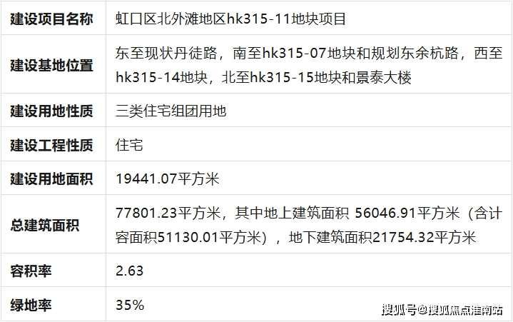 虹口北外滩地区hk315-11地块新建住宅项目,位于虹口区北外滩核芯区,东至现状丹徒路,南至hk315-07地块和规划东余杭路,西至hk315-14地块,北至hk315-15地块和景泰大楼.总建设用地面积约19441平方米,计容建筑面积约51130平方米.