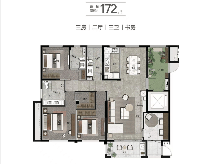 建面约172㎡4房2厅3卫▼