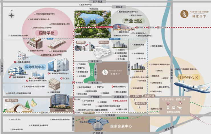 The main urban area of Shanghai, a new sub-center of the city: A national-level strategy integrating transportation hubs, national exhibitions and international business, it was included in the main urban area in the Shanghai 2035 Plan and became the new sub-center of Shanghai.