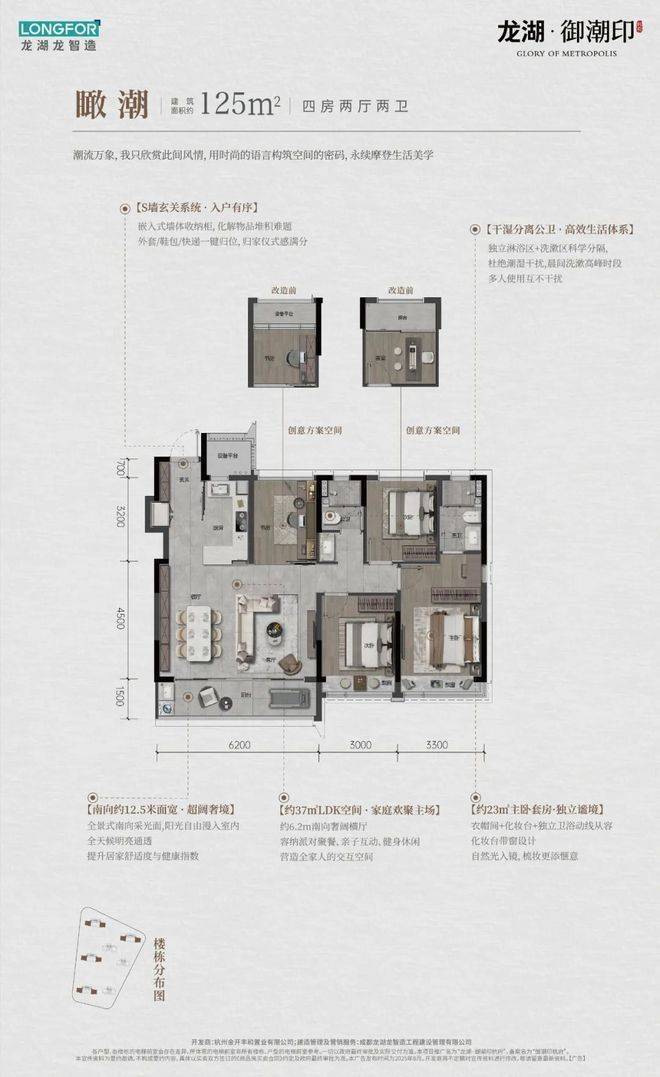龙湖御潮印占地约2.5万方,打造纯粹的7幢高层,错落排布出约494户住宅社区。