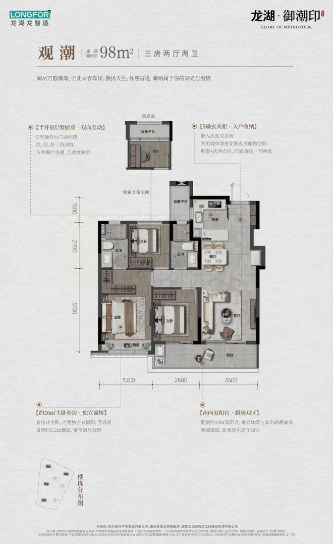 要知道,目前的杭州楼市新盘户型越做越大,钱江世纪城更是200方起步,御潮印建面约98方户型填补了市场空缺,以百万级的低门槛,享受真3房,显得尤为珍贵。