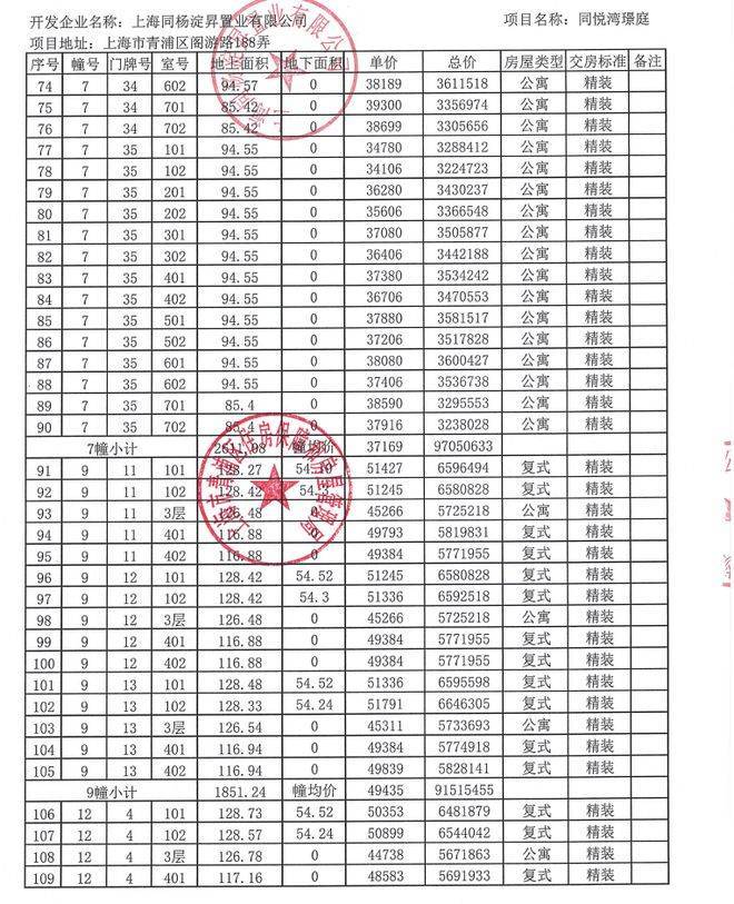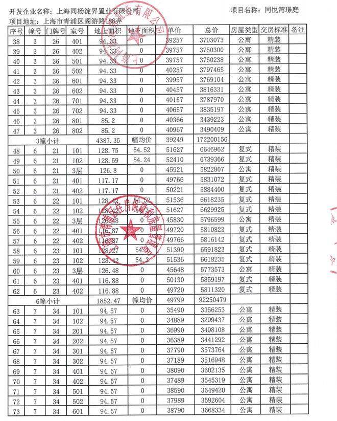 附全套一房一价表: