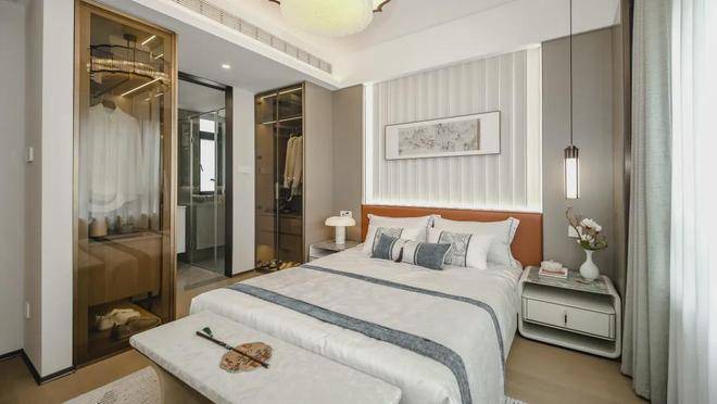 主卧套房设计,约4.05米面宽,空间宽敞,四件套主卫并预留步入式衣帽间的空间,收纳空间大。南向次卧面宽约3米,附带飘窗,可作为儿童房。北向房间面宽约3.1米,附带飘窗,可作为独立书房、客房,也可以与主卧合并,形成超豪华“小家化”的主卧套房。