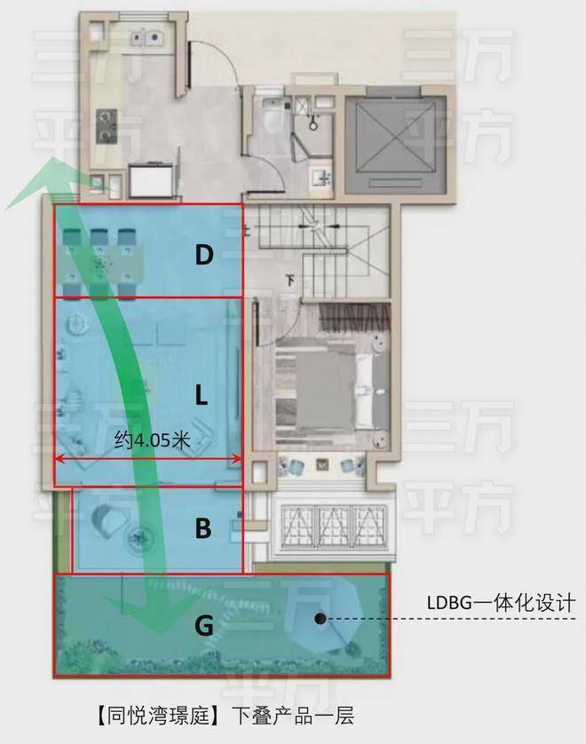 三万平方独家制作下叠一层户型采光图,不作为交付标准,最终以开发商公布为准