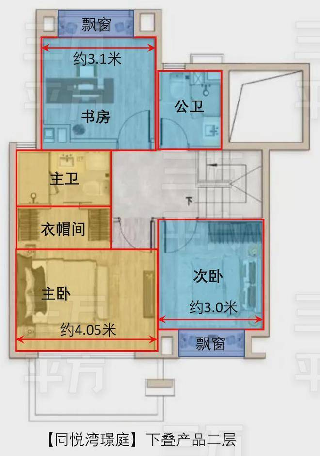 经三万平方测算,【同悦湾璟庭】下叠户型,阳台赠送约3㎡,飘窗赠送约3㎡,地下室赠送约55㎡,实际使用面积最多可达约245㎡(地下室隔开两层使用)。