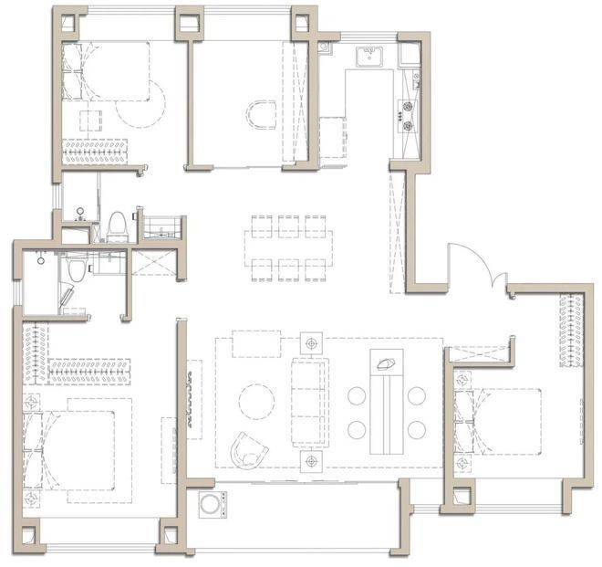 大横厅的设计,让这个户型拥有堪比别墅的南向采光面,这个尺度感以及采光通透度非常出众。