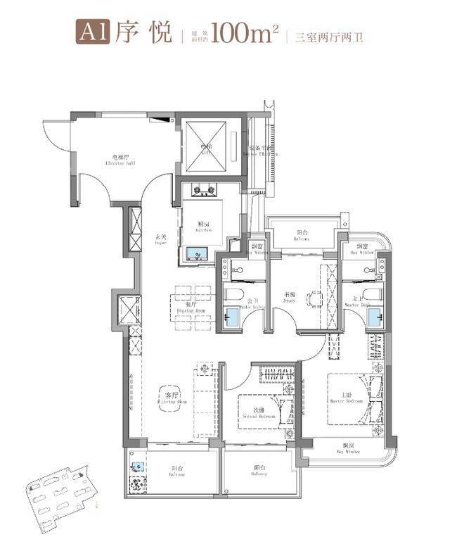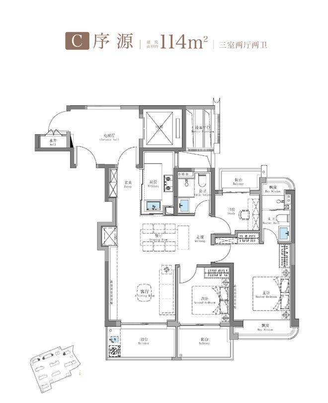 再来看建面约114㎡三房,百平三房的升级款,让人拥有“这是120㎡”的错觉!