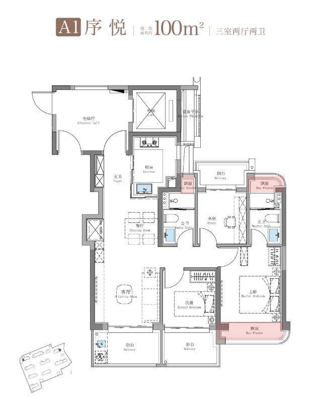 市面上常规高层的百平三房,我们按常规约75%得房率来计算,在计入飘窗和一半阳台的情况下,实得率,也很难突破85%!