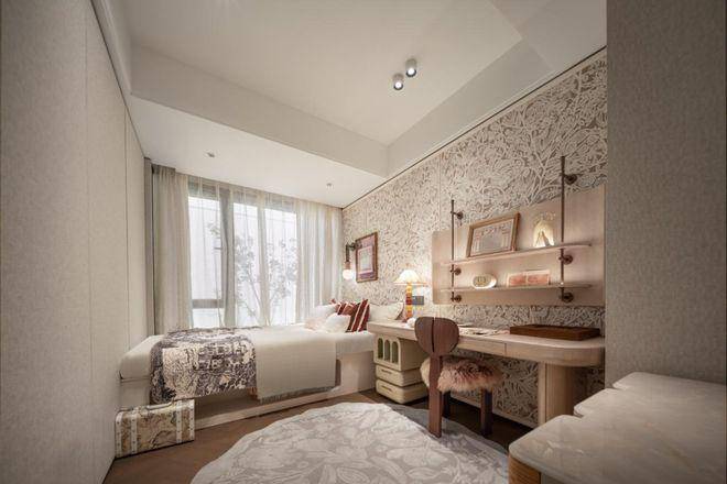 招商序三阳台的做法,明显是Next Level!比如说北卧室,只要未来业主愿意将北卧室与北阳台打通,那么整个北卧室,完全可以作为一个成人卧室使用,双人床、床头柜、收纳柜都可以轻松摆下,甚至还能再放置休闲椅!