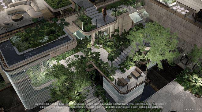 同时,搭载环幕级落地窗,户外,是垂直景墙、悬浮观景台与叠水景观立体穿插的园林景观,一边锻炼,一边欣赏窗外景色,让业主归家即享度假生活。
