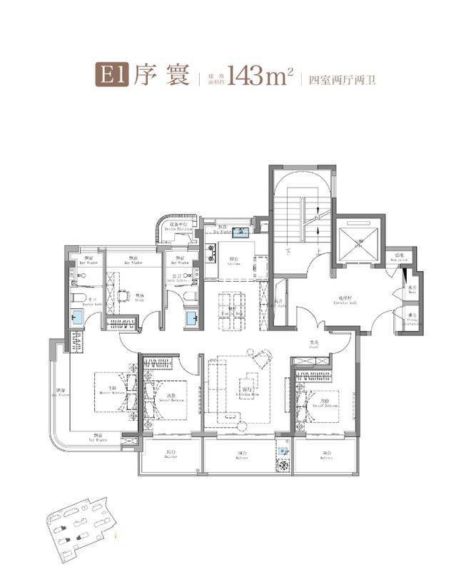 招商序143㎡户型(E1),不计入建面高达21.7㎡,相比市面同面积段户型的不计入建面多了约30%,可对标市面上建面约160㎡户型!
