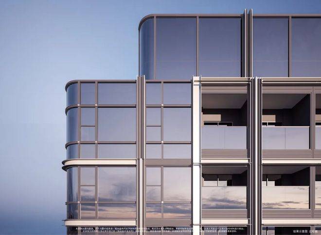 外立面方面,玻璃幕墙搭配铝板,超大窗墙比模糊了室内外界限,转角处更是做了弧线处理,打破了横平竖直的冰冷,打造了更具温度的立面。