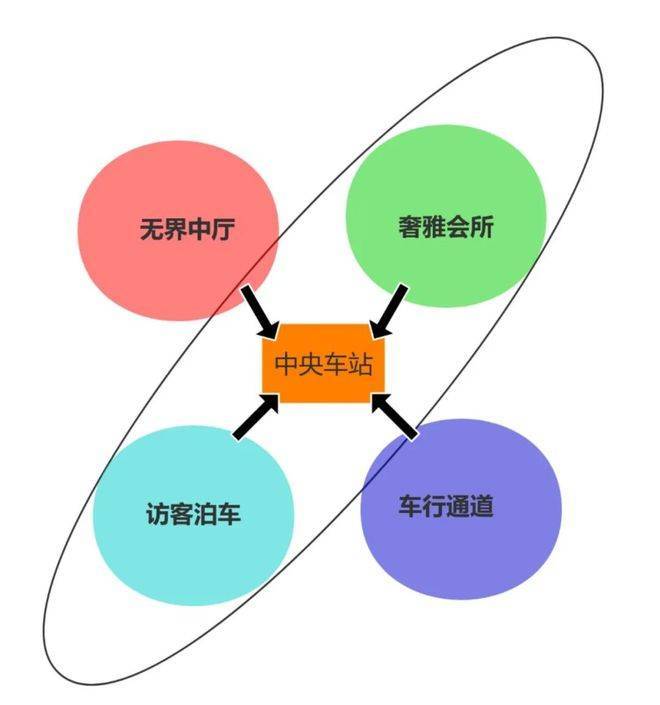 在招商序,车库不仅精装交付,还提出了“中央车站”的概念,通过动线的巧妙设置,让车库连通了访客泊车、会所、中厅、车行通道等各个空间。
