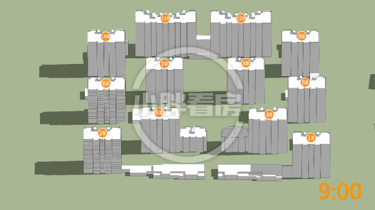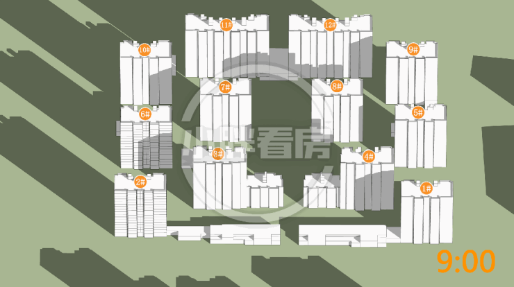 夏季:楼栋朝向正南采光优异。2#6#边户由于处于凹处位置,日照略有缺失。