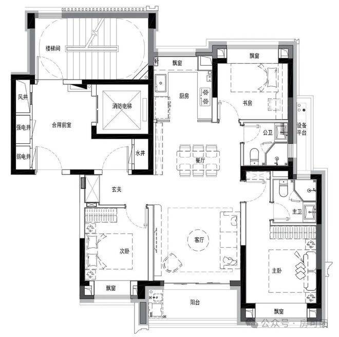 匠造建面约109-170㎡三至四房,其中建面约118㎡及以上户型均为两梯两户,以私密格局重构空间秩序。