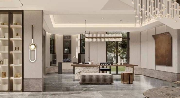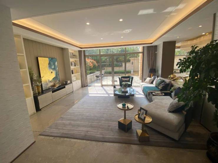DOUBLE LIVING ROOMS 奢阔双客厅:双首层设计,双入户模式,双客厅配置:D户型,逾18米南向面宽,一楼约10米挑高大堂,款待宾客,尽享尊崇;阳光庭院层,花园入户,友人相聚,畅享午后慵懒阳光。